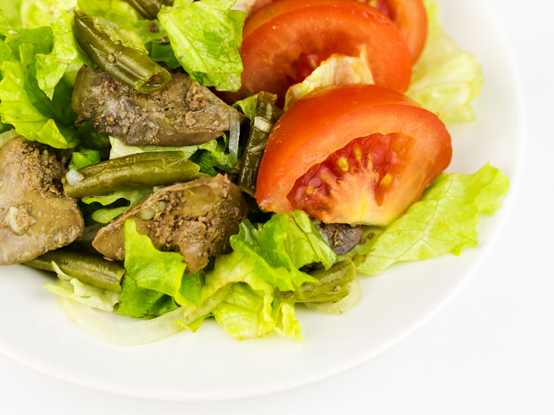 Салат со спаржей и морковью, Салат с колбасным сыром, Щи со свежей капустой и картофелем, Панкейк из печени и Макароны с маслом, Желудочки куриные по-домашнему и Рис припущенный, Хлеб белый, Хлеб бородинский